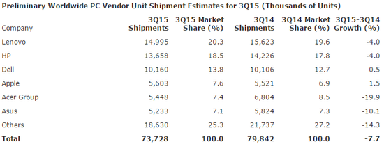 新浪科技訊 北京時間10月9日消息,市場研究公司Gartner發布的最新數據顯示,第三季度全球PC出貨量同比下降7.7%,至7370萬臺。美元匯率的走強導致全球用戶購買PC的價格出現上漲。