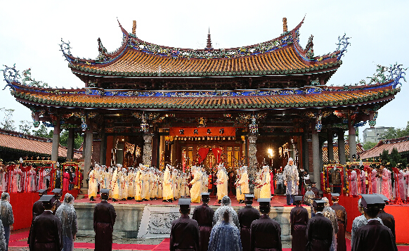马英九9日率部会首长出席台北孔庙举办的“纪念至圣先师孔子2565周年诞辰释奠典礼”,台“内政部“、教育部、文化部、考选部长都亲诣上香,这也是马英九自2008年当选“总统”以来,第5次亲临台北孔庙释奠典礼上香,另外3次则是去台南、台中及桃园孔庙祭孔。