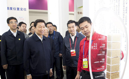 10月21日,中共中央政治局委員、國家副主席李源潮在北京中關村國家自主創新示范區出席“全國大眾創業萬眾創新活動周·青年創新創業論壇”。這是論壇開始前,李源潮參觀大眾創業萬眾創新展覽。新華社記者 王曄 攝