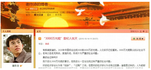 澎湃新聞發現,這篇引起軒然大波的文章至今還貼在謝作詩的博客、微博里。他表示,對網友的評論,他將撰文回應。