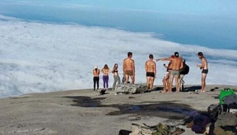报道称,5月30日数名外国登山者在攀登马来西亚着名的京那巴鲁山神山时,不听劝阻,6男4女在南峰区脱光衣服拍照。这些裸露者后被马来西亚警方逮捕并被控上法庭。