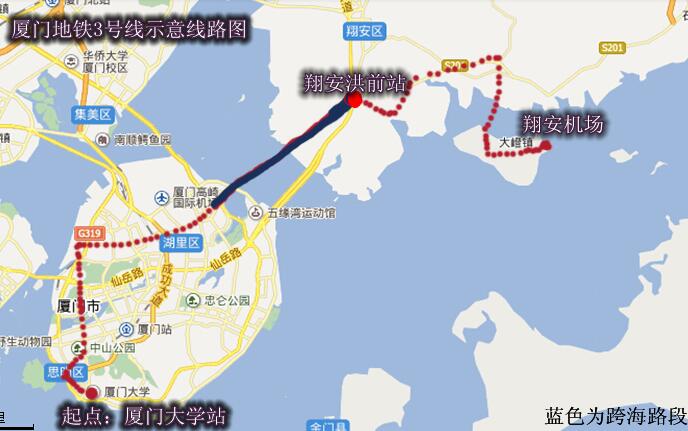 根據項目書,廈門軌道交通3號線起于廈門火車站,終于翔安機場,設車站26座(換乘站12座),包括:仙岳山、竹坑路、金尚路、東界、后村、蔡厝、大嶝、雙滬、陽塘、翔安機場等。項目在廈門本島設五緣灣停車場,在翔安區設蔡厝車輛段,在蔡厝站附近設主變電站一座。