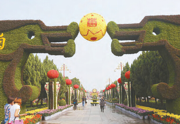 菊花文化節龍亭公園主會場,沿中軸線布展。
