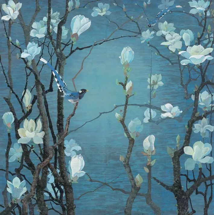 玉兰花开 纸本彩墨 105×105cm 1981年