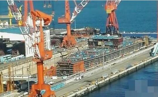 大連造船廠正在建造一艘噸位達數萬噸級別的大型船隻,該船隻被外界視為第一艘國產大型航母。內地近日有網友民發放一張疑似001A型國產航母施工現場的照片,可見船下主體部份已基本成形,船體吊裝上一個全新的大型預製件,相信屬機庫的一部份。
