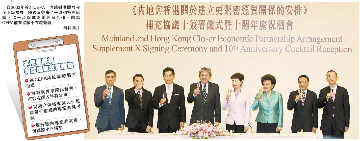 此外,本港專業人士進軍內地市場還受到地域限制。目前,香港人士只能在廣東開業,故多位來自不同界別的專業人士,一致希望國家盡快擴大CEPA開放範圍,不要只局限於廣東一省。