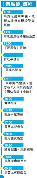 首先馬英九說明「習馬會」的緣起,當年在印尼巴厘島APEC會議當中,時任臺灣陸委會主委王郁琦與大陸國臺辦主任張志軍首次碰面,其后雙方在多個場合持續接觸。今年10月在廣州舉行的「張夏會」,雙方镕聊中提到了「習馬會」,最后達成了共識。馬英九強調,可以說是兩岸關系與時俱進,「習馬會」面水到渠成。