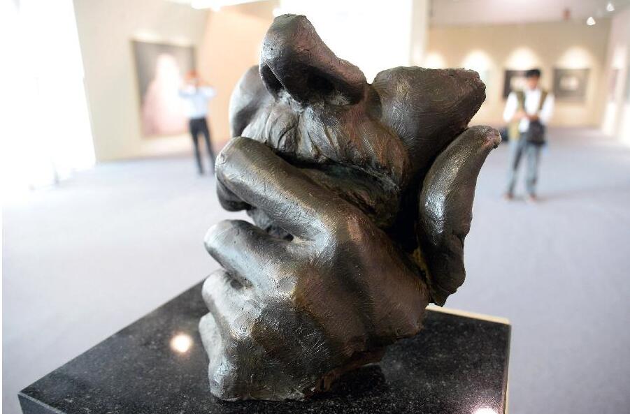 11月6日在西湖藝術博覽會上拍攝的雕塑作品《思考》。