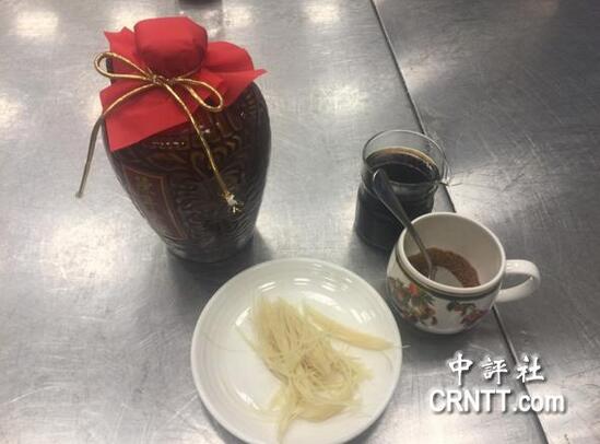 圖:馬祖老酒配上生姜絲與紅糖,是臺灣地道的飲法,風味絕佳。