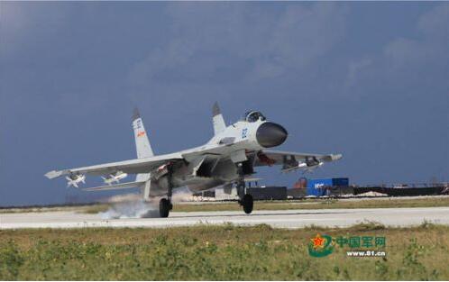 解放軍海軍航空兵殲-11BH戰斗機在西沙永興島機場著陸
