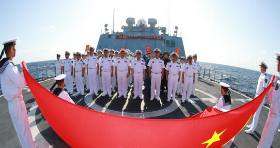 當地時間10月1日上午,正在亞丁灣、索馬里海域執行護航任務的中國海軍第二十一批護航編隊舉行隆重的升國旗儀式,慶祝中華人民共和國66歲華誕。中新社記者 曾行賤 攝