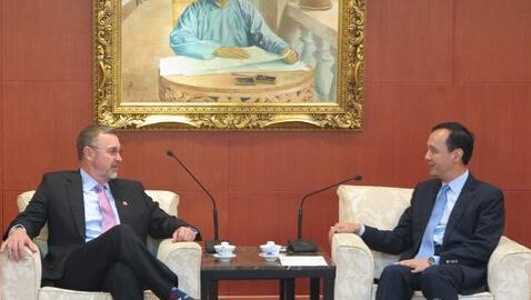 美國聯邦眾議院外交委員會亞太小組主席邵建隆(Matt Salmon)10日上午赴國民黨中央黨部拜會黨主席朱立倫。