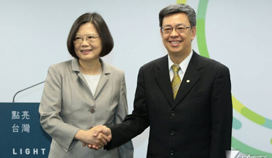 11月16日,蔡英文(左)宣布副手人选为中研院副院长陈建仁(右)。图片来自风传媒