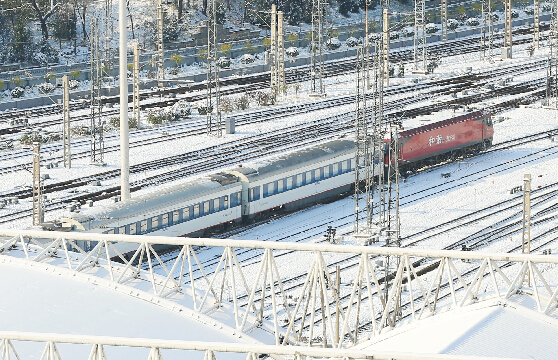 11月22日,华北地区普降中到大雪。为确保安全,北京铁路局管内京沪高铁、京广高铁、京津城际、津秦高铁采取限速运行措施,影响部分旅客列车正点。为确保客货运输畅通和旅客出行安全,北京铁路局及时启动全局除雪防冻应急预案。目前,北京各火车站列车到发情况基本恢复正常。
