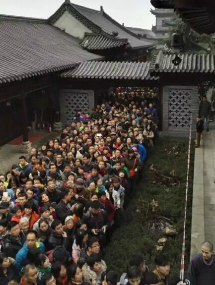 11月21日,西安市长安区终南山下的古观音禅寺内人们排着长队,欣赏、拍摄这里的千年古银杏树,[详细]据央视,陕西西安罗汉洞村观音禅寺内的这棵银杏,据传为李世民亲手栽种,已有1400多年历史。