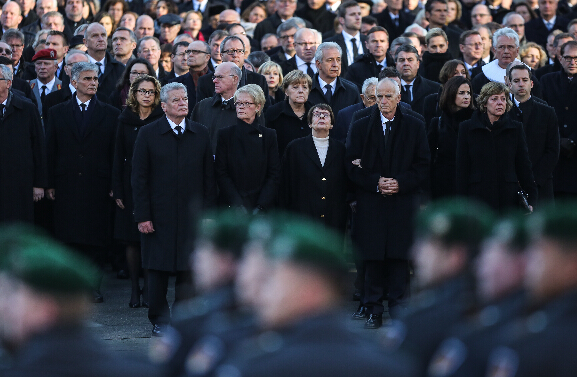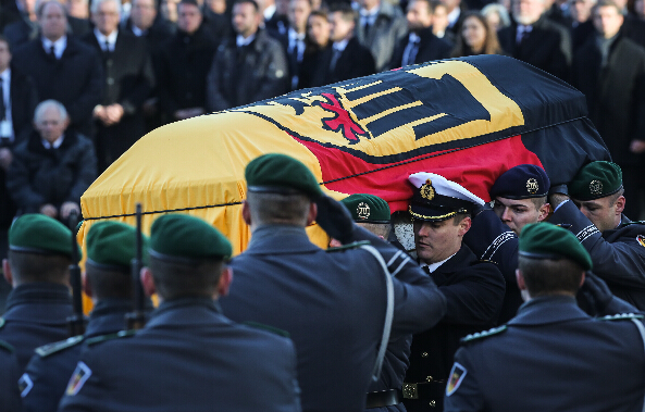 德国前总理赫尔穆特·施密特的国葬仪式23日在其家乡、德国北部城市汉堡的圣米夏埃利斯教堂举行。包括德国总统高克、总理默克尔、欧盟委员会主席容克、欧洲议会议长舒尔茨以及法国前总统德斯坦、美国前国务卿基辛格等在内约1800人参加了国葬仪式。