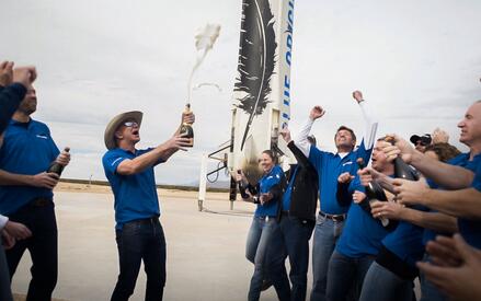 凤凰科技讯 北京时间11月25日消息,据彭博社报道,过去15年来,杰夫·贝索斯(Jeff Bezos)旗下的“蓝色起源”(Blue Origin)公司一直都是航天行业一个巨大的谜。这家由亚马逊CEO贝索斯创立的公司,以其背后富甲一方的支持者,和间或上传的测试发射视频吸引外界和太空极客的注意。在很大程度上,蓝色起源公司一直在避免引起公众的注意,但坦白来说,其取得的成就似乎并没有它的同行——埃隆·马斯克(Elon Musk)旗下着名太空探索公司SpaceX般耀眼。但是很明显,蓝色起源公司目前已经准备好走到台前接受公众的注目,而一场现代的、令人兴奋的太空竞赛也随之正式拉开序幕。