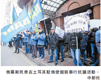 襲機事件發生后,大量俄民眾在土駐俄使館前舉行抗議集會。部分抗議者認為,俄戰機被擊落是對俄羅斯的挑釁。還有人認為,此事是土耳其軍方的責任。