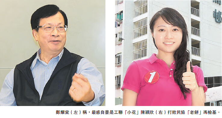【香港商報網訊】記者黃雪峰報道:新一屆區議會選舉塵埃落定,工聯會今屆取得29個議席,繼續維持區議會建制第二大黨地位。榮譽會長鄭耀棠(棠哥)昨日總結時形容,工聯會表現「Notsogood,Notsobad」(不算太好,也不太壞),整體而言是「平穩而達標」,并無太大突破、但亦不能說沒有過錯。當中最讓他感到自豪的是「小花」陳穎欣成功擊退「民協大佬」馮檢基當選。