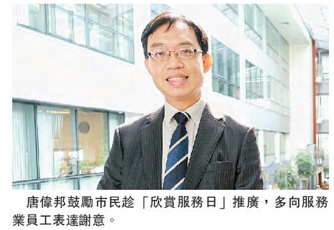 唐伟邦直言,服务业员工压力大,周不时遇上问题,顾客遇到差的服务便会投诉,遇到好的服务却不会表示感谢,其实此做法失衡,故协会连续几年举办「欣赏服务日」,鼓励顾客多向服务业员工说「谢谢」,多一点笑容、多一些体谅,顾客买得开心之余,员工亦服务得高兴。