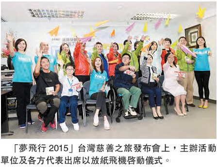 「梦飞行2015」台湾慈善飞行之旅昨日在港举行发布会,主办单位信愿荣景慈善基金旗下之港澳台三地「IN义工团」,及全力支持活动的台湾观光局驻香港办事处主任巫宗霖出席,即将启程的残障儿童及其家长也到场分享。