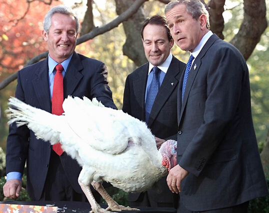 2001年的感恩节火鸡赦免仪式上,名叫“自由”的火鸡突然向小布什腰部发起攻击。这个经典画面被摄影师捕捉下来,媒体调侃称他被性骚扰,称“这是被赦免火鸡表达对他的感激之情”。2008年布什卸任后,媒体把它列为布什“10大尴尬时刻”之首。