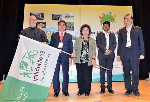 高雄市长陈菊(中)今年9月24日甫接任ICLEI生态交通联盟主席。(高雄市政府提供)