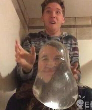 如果一切顺利的话,这个安全套可以在不被打破的情况下顺利套在挑战者的脑袋上,同时水不会洒出。但如若操作不当的话,挑战者就会彻头彻尾地成为一只“落汤鸡”,此次挑战便算是失败了。