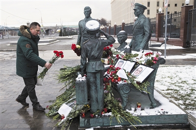 11月26日,莫斯科,民眾悼念因土耳其擊落戰機而遇難的飛行員和被土庫曼武裝分子打死的海軍陸戰隊隊員。
