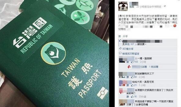 據臺灣聯合新聞網報道:臺灣劉姓網友在臉書(Facebook)發文,“我有個朋友今天在新加坡海關被拘留,準備被遣返香港,原因是護照上面貼了‘臺灣國’的貼紙……馬(英九)的‘外交部’在干嘛!?我們被羞辱了他們知道嗎?”