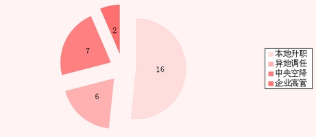 從幹部提拔的來源看,31位地方政府一把手中,從當地官員中選拔晉升的有16人,超過半數;有6位是從其他省區市調任;7位是從中央部門“空降”;還有2位是從國企“空降”。其中,異地調任和空降官員的此前任職經曆基本與現任職地無交集。