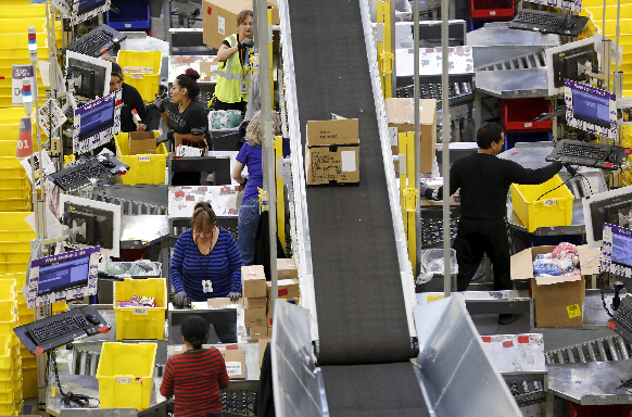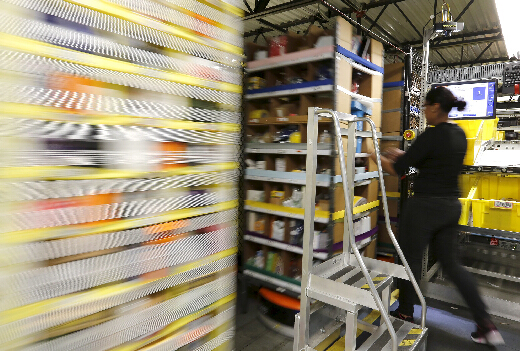 11月29日,工人在美国加利福尼亚州特雷西的亚马逊物流中心准备订单。