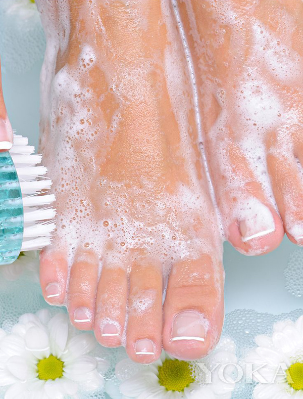 足部的保养应定期去除角质,保持皮肤的柔嫩光滑,可以用天然的浮石从膝盖以下细细打磨足部皮肤,从而改善暗晦、干燥和粗糙的皮肤。也可以使用身体磨砂膏或是砂糖颗粒按摩,之后用清水冲洗干净。