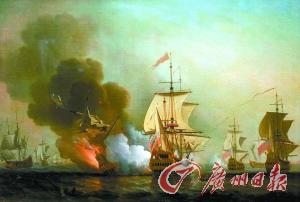 这幅油画描绘了西班牙“圣何塞”号被英军击沉的场景。
