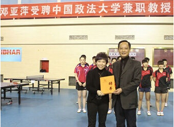 据介绍,邓亚萍首先填写了《中国政法大学兼职教授申请表》,经学校体育教学部学术委员会同意,体育教学部向学校人事处提交了聘任报告,经学校人事处报主管校领导审批后,才正式聘任邓亚萍为学校体育教学部兼职教授。