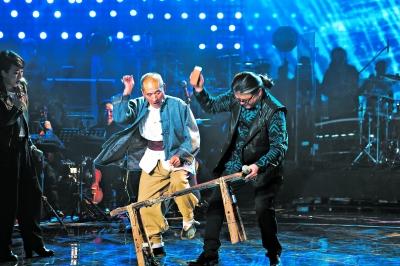在上周六东方卫视《中国之星》中,谭维维与华阴老腔艺人们合作的一首《给你一点颜色》技惊四座,摇滚乐与传统民乐混搭出了别样的味道,收获了现场热烈的掌声。节目播出后,这段视频瞬间刷爆了微信朋友圈,许多人都为这新老摇滚碰撞的魅力而惊叹—— “女娲娘娘补了天,剩下块石头是华山。”在当晚的竞演中,谭维维一亮嗓就震撼了现场。而她身后的是五位老艺术家更是吸尽眼球。他们手中是月琴、二胡,甚至还有独特的“打击乐器”长板凳,这正是来自陕西华阴的老腔艺术家们,他们用土生土长的腔调和乐器演奏起关中妇孺皆知的民谣“他大舅他二舅都是他舅”,老腔与谭维维的演唱穿插进行,居然融合得天衣无缝。当演出最后老艺人用枣木敲击起长板凳时,整个现场都沸腾起来了。 这些老腔艺术家们,不少观众并不陌生。2006年北京人艺推出话剧《白鹿原》,导演林兆华将华阴老腔发掘搬上话剧舞台,让许多观众开始了解这个存在于陕西民间的古老音乐形式。在电影《白鹿原》中,老腔艺术家们也有过一段完整的表演。崔健在推荐词中表示,自己也曾计划尝试摇滚与老腔的结合,原本想在2014年春晚与老腔艺人一起合作《一无所有》,但因种种原因没能实现。谭维维终于在舞台上实现老腔与摇滚的碰撞,这也让崔健激动不已,“你们看到的真的是一个教科书级的中国摇滚乐,或者说是一个真正的民谣音乐与摇滚乐结合的最佳典范。” 演出当晚,现场300位大众音乐评审中有299位投票支持谭维维,让她毫无悬念地成为了《中国之星》第三期的单期冠军。台下的刘欢跑上台去,学着砸了几下长板凳后发出由衷的敬佩(上图)。 节目播出后,网友们纷纷惊呼这场演出“是一个大写的牛字”,演员陈数微博感慨,这首歌让她泪流满面。仅仅半天时间,谭维维与老腔艺人的表演视频已经累计播放165万余次,登上了热门话题排行榜。 幕后 谭维维怎么请来这些老前辈的 实际上,这不是谭维维第一次与民族器乐合作了,在年初《我是歌手》第三季的舞台上,谭维维就曾与蒙古族的杭盖乐队合作《乌兰巴托的夜》大获成功。虽然身为一名流行歌手,谭维维却格外偏爱民间音乐,希望用他们来充实自己的音乐。《中国之星》已经是谭维维今年参加的第三档音乐类电视节目了,第一期播出后观众中出现了一些质疑她的声音,认为她今年出镜太多,已经有些让人审美疲劳了。谭维维也很焦虑,她害怕自己唱不出新鲜的感觉。 “这个(表演)来源于一个念头,我希望寻找一些中国特别民间的或者是更久远的音乐元素,但是它是充满着摇滚气息的。其实我们当下听到的很多摇滚音乐都是来自西方的,我想做一个东西方这种音乐的碰撞。”谭维维透露自己一直想做这样一种尝试,而她第一个想到的就是几百年前的华阴老腔,“我觉得他们就是中国最早的摇滚。” 为了寻找到这些七十多岁的老腔艺人,谭维维没少花工夫。她通过很多渠道去找联系方式,先打电话找到陕西的朋友,又找到陕西省歌舞剧院,然后又通过他们找到华阴市文化馆,再由文化馆的馆长出面才联系到了老艺术家们。没想到老腔艺术家们很快就答应了,谭维维连忙张罗着给他们安排行程,安排老腔艺术家们来北京与自己一起排练。 老腔是民间艺术,自由豪放,不受节拍约束,但谭维维在舞台上的呈现和电子乐队的演出,又不能离开节奏,双方开始磨合并不顺利。“在彩排的时候我们出现过很多问题,因为五个老爷子他们没有戴耳麦的习惯,所以说他们听不到鼓点,听不到鼓点势必是错乱的。”谭维维说。她觉得自己这种尝试简直是一种冒险。彩排的时候,崔健始终半低着头一言不发,让谭维维一下紧张起来。结果当谭维维询问时,崔健说:“没有想到你们做得那么好。”这让谭维维心里的石头一下落了下来。 这次表演的成功给了谭维维很大的鼓舞,演出后她在台上激动泪流。“我看着那些叔叔们就觉得特别感动,他们席地而坐,然后用那么饱满的情绪在为所有人表演和歌唱。我觉得这次试验得到了肯定,特别开心。”