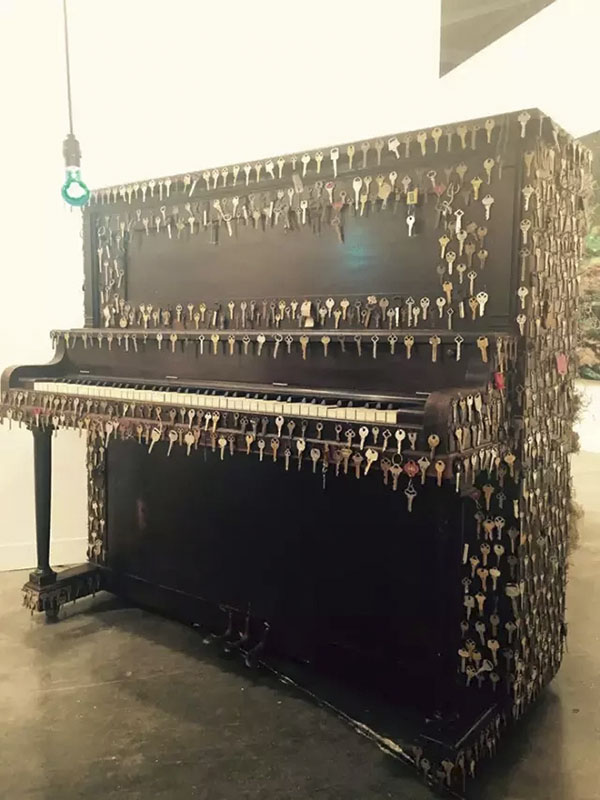 Nari Ward 拼凑的保险钥匙、钢琴、灯等材料1331x152x77cm