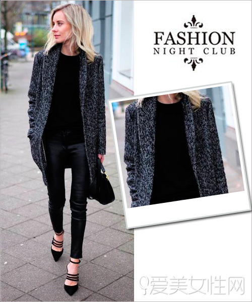 【小编点评】:黑色呢子外套搭配黑色打底裤,显瘦又温暖,再配上一双黑色短靴,冬天必备的一套穿搭。