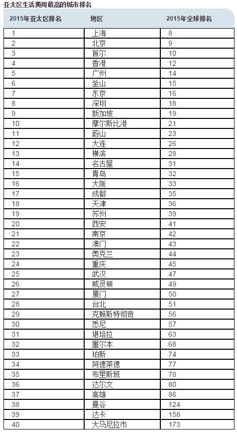 参考消息网12月11日报道英媒称,人力资源咨询机构ECA国际的一项生活成本调查显示,因人民币升值,亚太地区外派人员生活成本最高的20个城市中,中国城市超过半数。