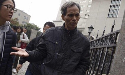 上海二中院外,林森浩父亲跟儿子见面后,接受媒体采访。