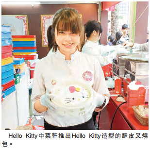 今年参与的食肆约20间,当中最有看点的要数首次参加工展会的Hello Kitty中菜轩的特色点心,包括在工展会限定发售的Hello Kitty造型酥皮叉烧包等。Hello Kitty中菜轩经理王先生表示,今年首次参展,未有设定预期销售额,但指Hello Kitty形象深受小朋友欢迎,相信点心的销量不俗。除了特色的叉烧包外,该摊位亦有售卖流沙包、马拉糕、叉烧酥及汤包礼盒。