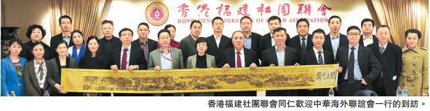 【香港商報網訊】記者于寧寧報道:中華海外聯誼會一行日前到香港福建社團聯會參觀訪問,受到了香港福建社團聯會同仁的熱烈歡迎,座談會日前在該會會所舉行。福建海外聯誼會秘書長廖長桂,香港福建社團聯會副主席周安達源、姚加環、陳榮旋,香港福建社團聯會常務副秘書長兼總干事周珊珊等出席主禮。