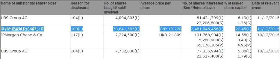 低價入手之后,姚振華盡顯潮汕商人兇悍本色。于2015年11月27日開始,通過南方資本等資管通道,漲停板掃貨,又買入4.969%、5.49億股,耗費96.52億。