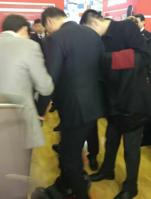 據微博號@學習粉絲團,習近平在視察小米展臺時,除了聽取小米公司董事長雷軍介紹小米手機和小米電視外,還體驗了九號平衡車。