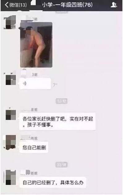 在截图中,小编还发现一个细节,这个被坑的老爹似乎并不知道如何在群里删除不雅照,反倒提醒其他家长删照片,在热心家长的提醒下,才表示“自己的已经删了,具体怎么办”。对手机智能操作的熟悉程度明显不如自家小孩,也是让人醉了。