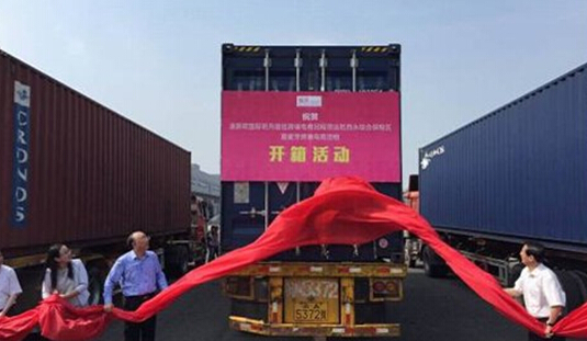 今年6月26日,重庆举行了一个“渝新欧”铁路国际班列首批跨境电商回程货物开箱仪式,黄奇帆到现场见证开箱时刻。