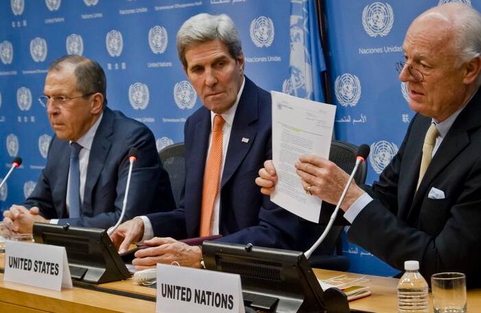 十七個國家包括美、俄的外長在紐約舉行了五個多小時會議,商討如何落實上月在維也納提出的停火及和談方案。美國國務卿克里會後對記者說:「我們希望明年一月能在談判桌達成敍國全面停火,全面停止開炮、轟炸、射擊和互相攻擊。」聯合國敍利亞問題特使米斯圖拉表示,他一月會發出參加敍利亞停火談判的邀請信。決議案稱,談判應於一月開始,但克里指一月中或一月下旬更有可能。