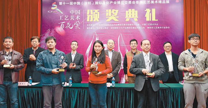【香港商報網訊】12月14日,為期4天的「第十一屆文博會冬季工藝美術精品展」圓滿閉幕,當天,主辦方揭曉了新一屆「中國工藝美術百花獎」評選結果并於深圳會展中心玫瑰廳舉行「中國工藝美術百花獎」頒獎典禮。香港商報記者 陳柳燕