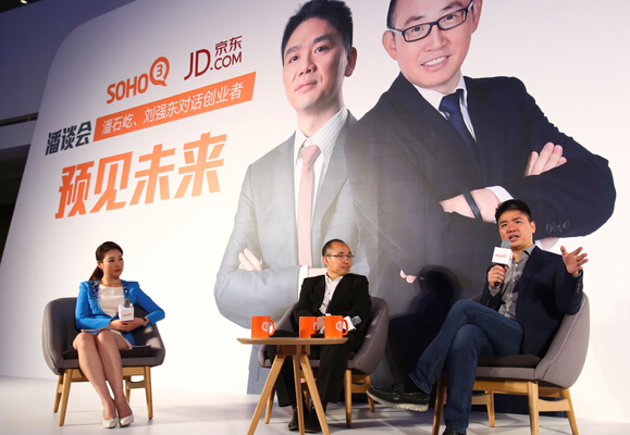 12月21日,在北京光華路SOHO3Q空間,京東集團CEO劉強東與SOHO中國董事長潘石屹就創業話題展開討論。劉強東表示,當今社會的進步很大一部分來自于創業者的堅持和堅守,那些成功的,包括失敗的創業者,共同為這個社會做出了貢獻,才推動社會進步。