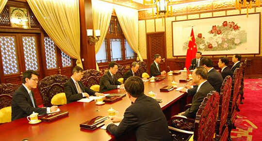 梁振英昨日下午首先在中南海紫光阁向李克强总理述职。香港媒体注意到,此次座位安排同以往有很大不同,由以往“并排”会谈改成领导人主持会议的形式。李克强坐在长型会议桌正中,李克强右侧依次是梁振英、国务院港澳办主任王光亚、中联办主任张晓明、特首办主任邱腾华;左侧依次是国务委员杨晶和杨洁篪等。